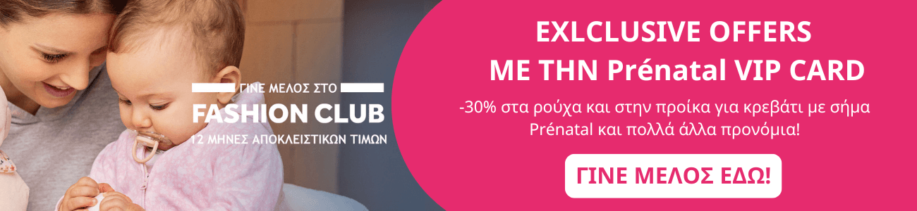 Με συνδρομή 20€ κερδίζεις -30% για 12 μήνες σε όλη τη συλλογή ρούχων και προίκας Prénatal!