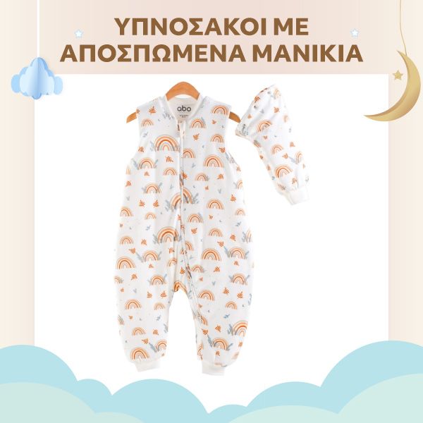 με αποσπώμενα μανίκια και φερμουάρ 2 κατευθύνσεων, φοριούνται σαν ρουχαλάκι, δίνοντας στο παιδί απεριόριστη ελευθερία κινήσεων, επιτρέποντάς του να σηκώνεται και να περπατά. Σε παστέλ αποχρώσεις με χαριτωμένα σχέδια.
