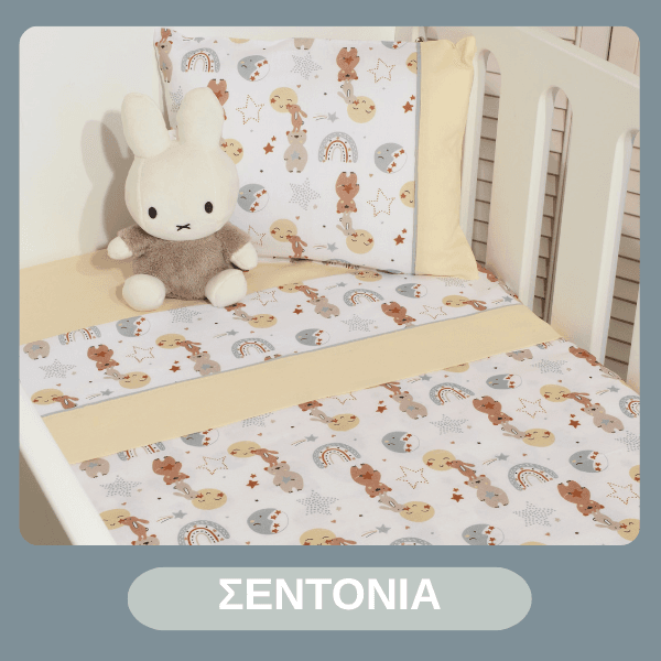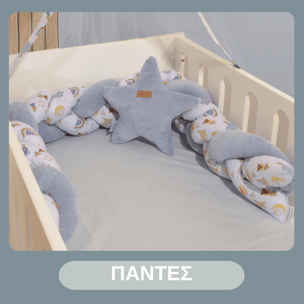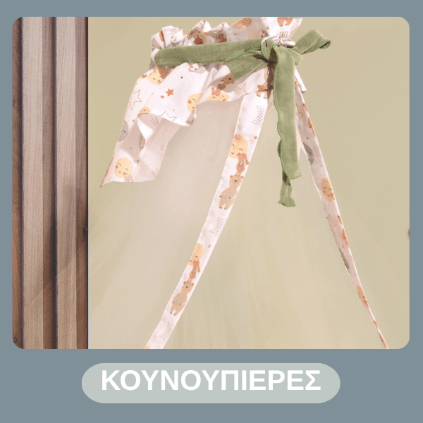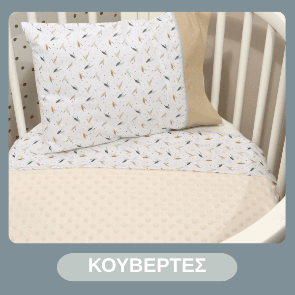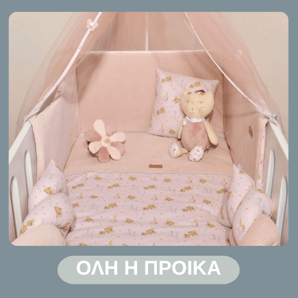Σεντόνια για λίκνο και κρεβάτι, πάντες προστασίας, κουνουπιέρες, μαξιλάρια, κουβέρτες και παπλώματα διαθέσιμες σε διαφορετικές παστέλ αποχρώσεις που θα εξασφαλίσουν άνετο, ποιοτικό και ήρεμο ύπνο. Απορροφητικές πετσέτες και κάπες για το μπάνιο.