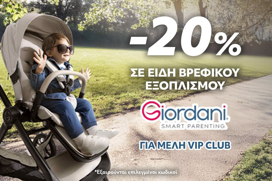 Η Prénatal φέρνει ακόμη πιο κοντά τις οικογένειες στην ποιότητα και την αξιοπιστία της Giordani, της αγαπημένης ιταλικής εταιρείας βρεφικών ειδών! Ανακάλυψε όλες τις κατηγορίες προϊόντων Giordani με έκπτωση -20% για τα vip Μέλη, αποκλειστικά από την Prénatal.