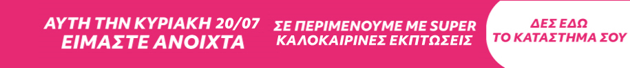 Την Κυριακή 20 Ιουλίου τα παρακάτω καταστήματά μας θα είναι ανοιχτά, για να πραγματοποιήσετε τις αγορές σας και για να εκμεταλλευτείτε τις μοναδικές καλοκαιρινές εκπτώσεις μας σε πολλά είδη βρεφανάπτυξης, ένδυσης, υπόδυσης και σε παιδικά παιχνίδια ! 🛒✂️