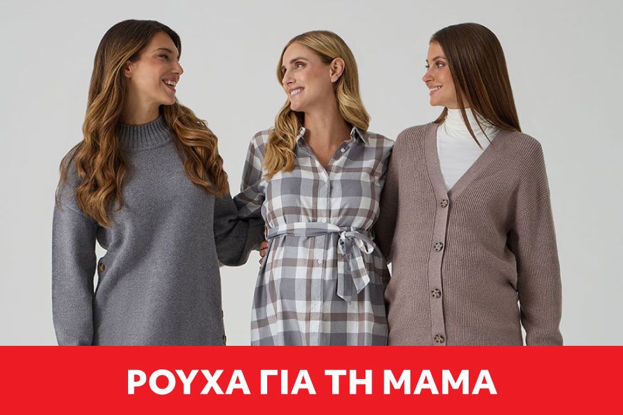 🔹 Ρούχα για μαμάδες: μπλούζες, πουλόβερ, φορέματα, παντελόνια, ζακέτες και άλλα άνετα ρούχα για καθημερινή χρήση.